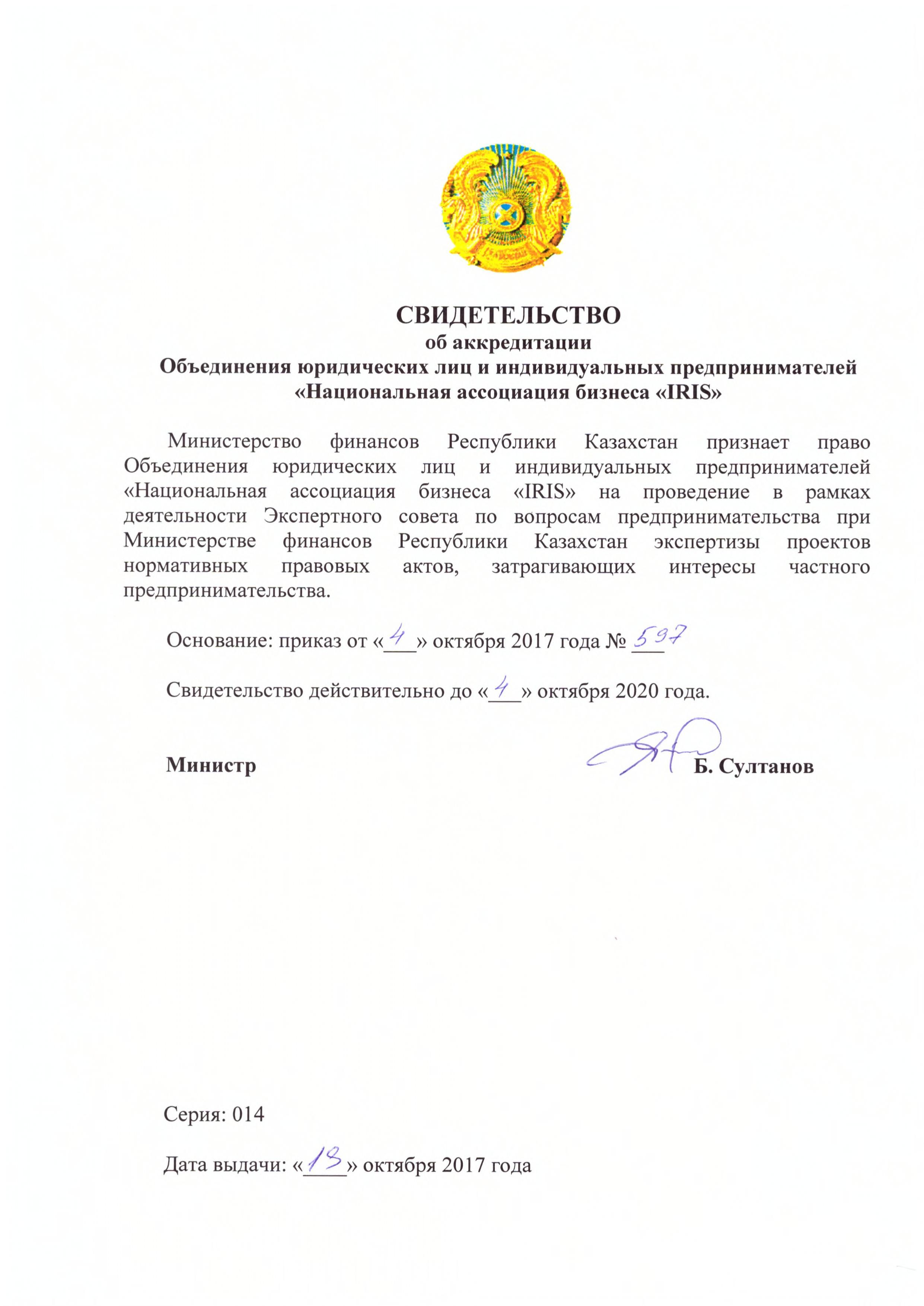 Национальная ассоциация бизнеса IRIS вошла в состав Экспертного совета по вопросам предпринимательства при Министерстве финансов