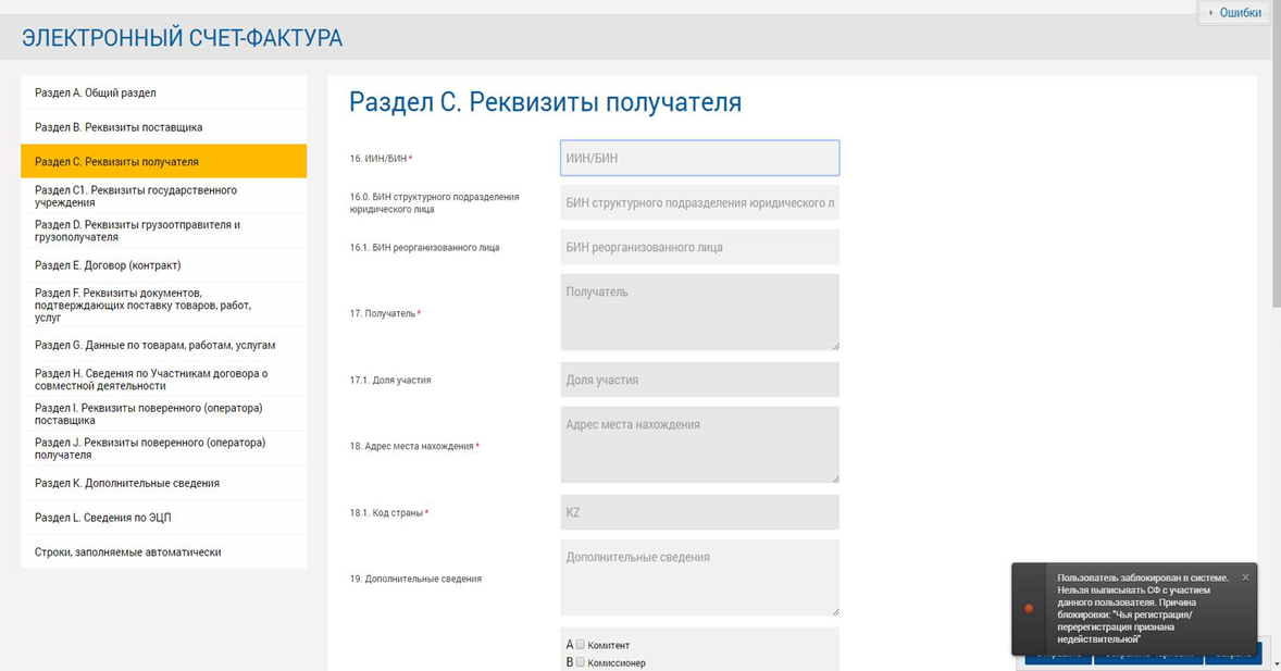 ·Заблокирована сотрудником ОГД. Выписанные ЭСФ, по которым были первоначально присвоены регистрационные номера, однако по истечению времени в ИС ЭСФ аннулируются сотрудником ОГД. При этом, служба техподдержки ИС ЭСФ рекомендует внести следующие корректировки: с указанием ИИН получателя товаров, работ, услуг с отметкой в строке 20 «Категория получателя» ячейка «J» физическое лицо; без указания ИИН получателя товаров, работ, услуг с отметкой в строке 20 «Категория получателя» ячейка «I» розничная реализация. С такой рекомендацией не согласны, так как считаем, что некорректно выписанные ЭСФ для налогоплательщика является риском в виде административного наказания.