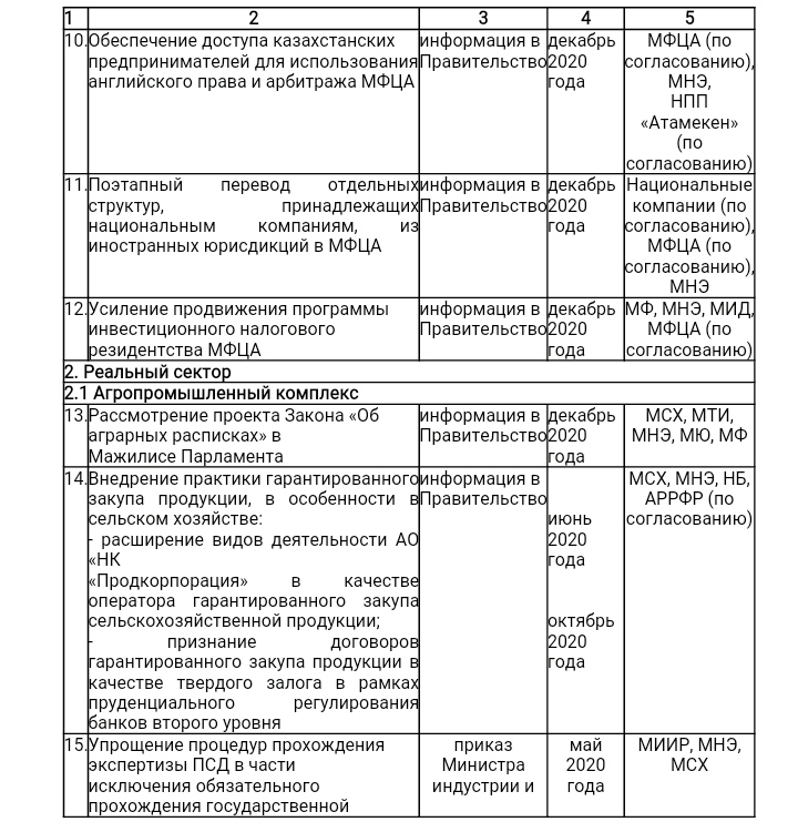 Комплексный план по восстановлению экономического роста до конца 2020 года