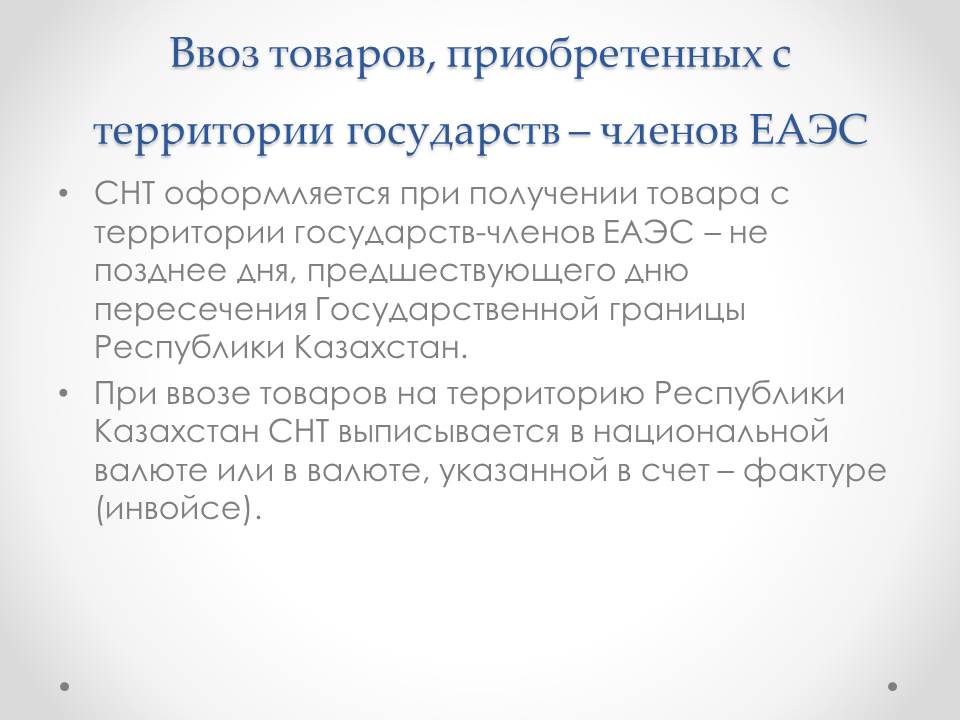 Инструкция по оформлению СНТ ввоз товаров, приобретенных с территории государств – членов ЕАЭС