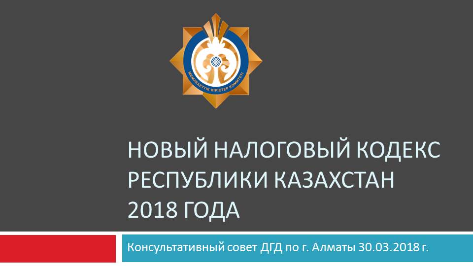 Новый налоговый кодекс республики Казахстан 2018 года - Консультативный совет ДГД по г. Алматы 30 марта