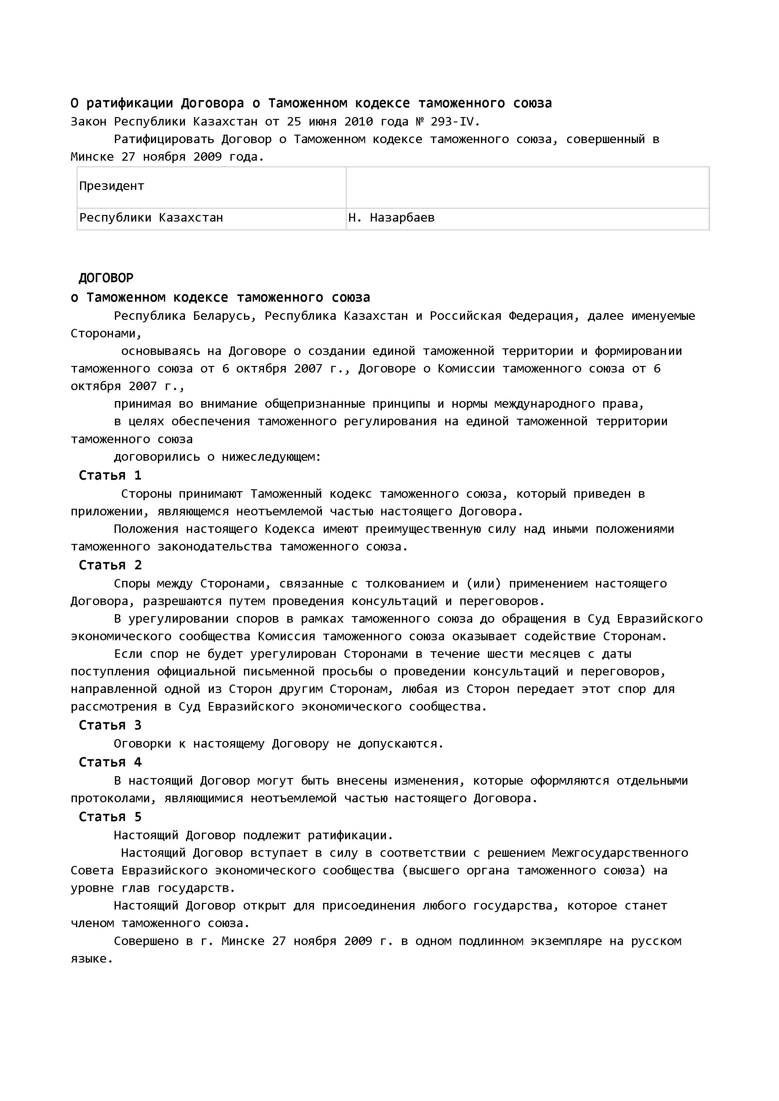 О ратификации Договора о Таможенном кодексе таможенного союза