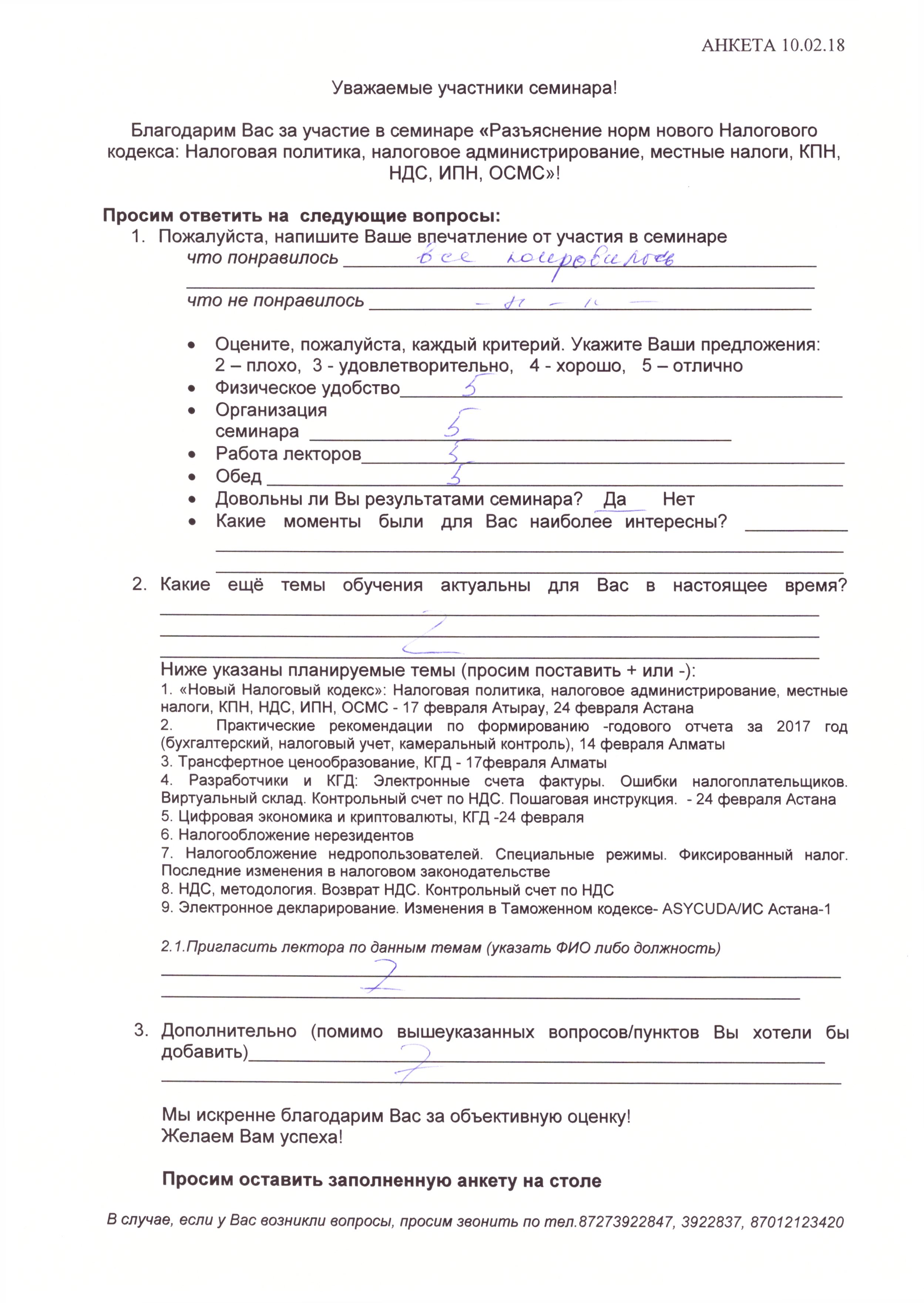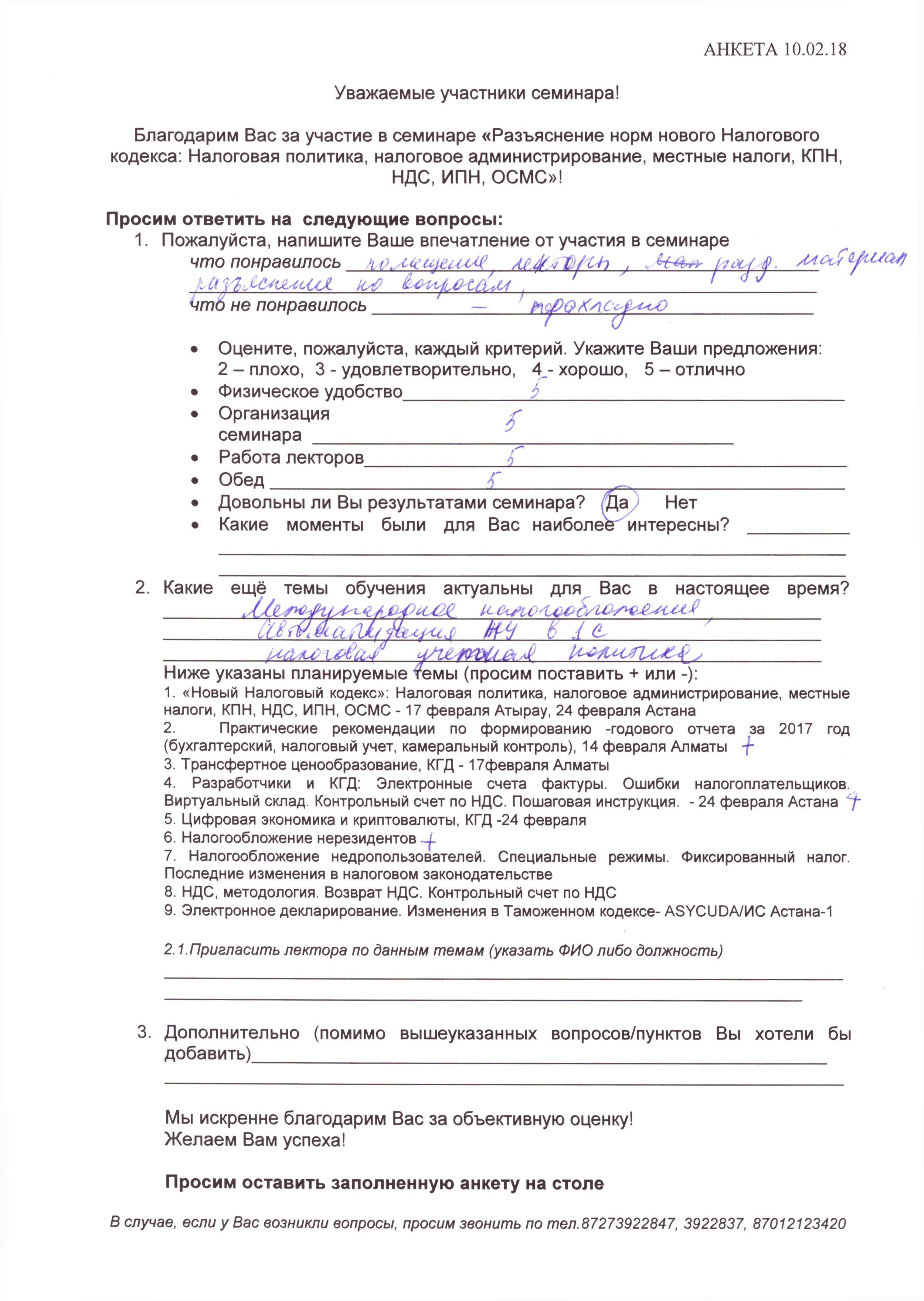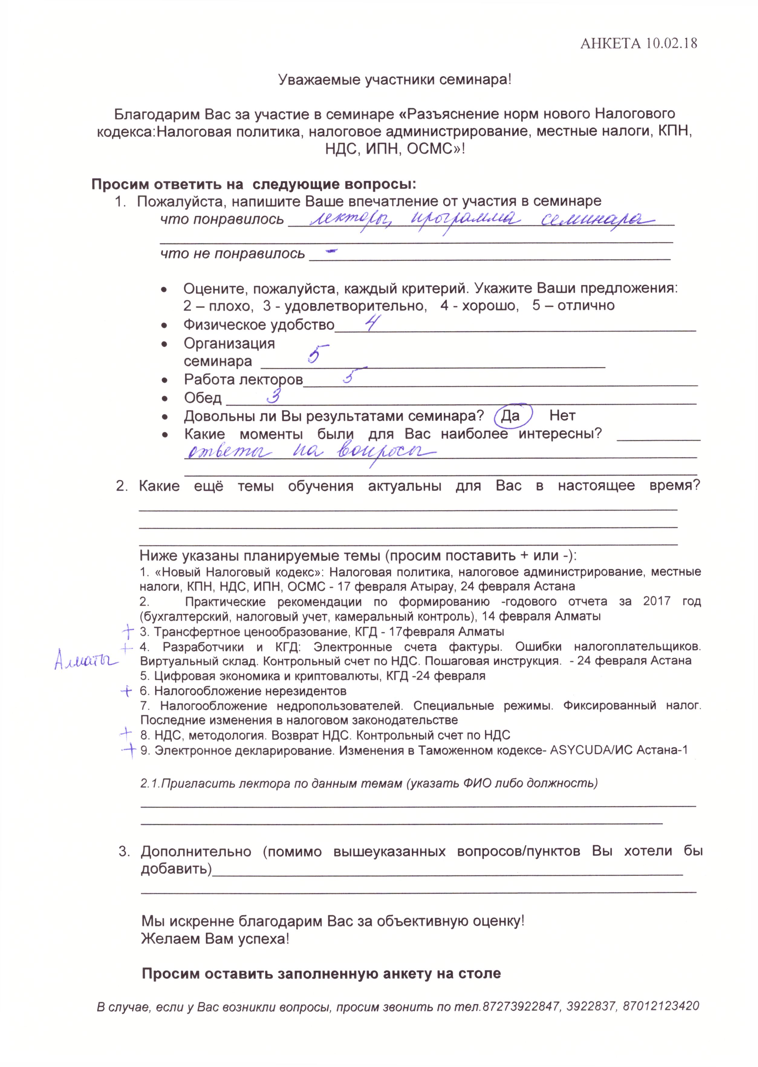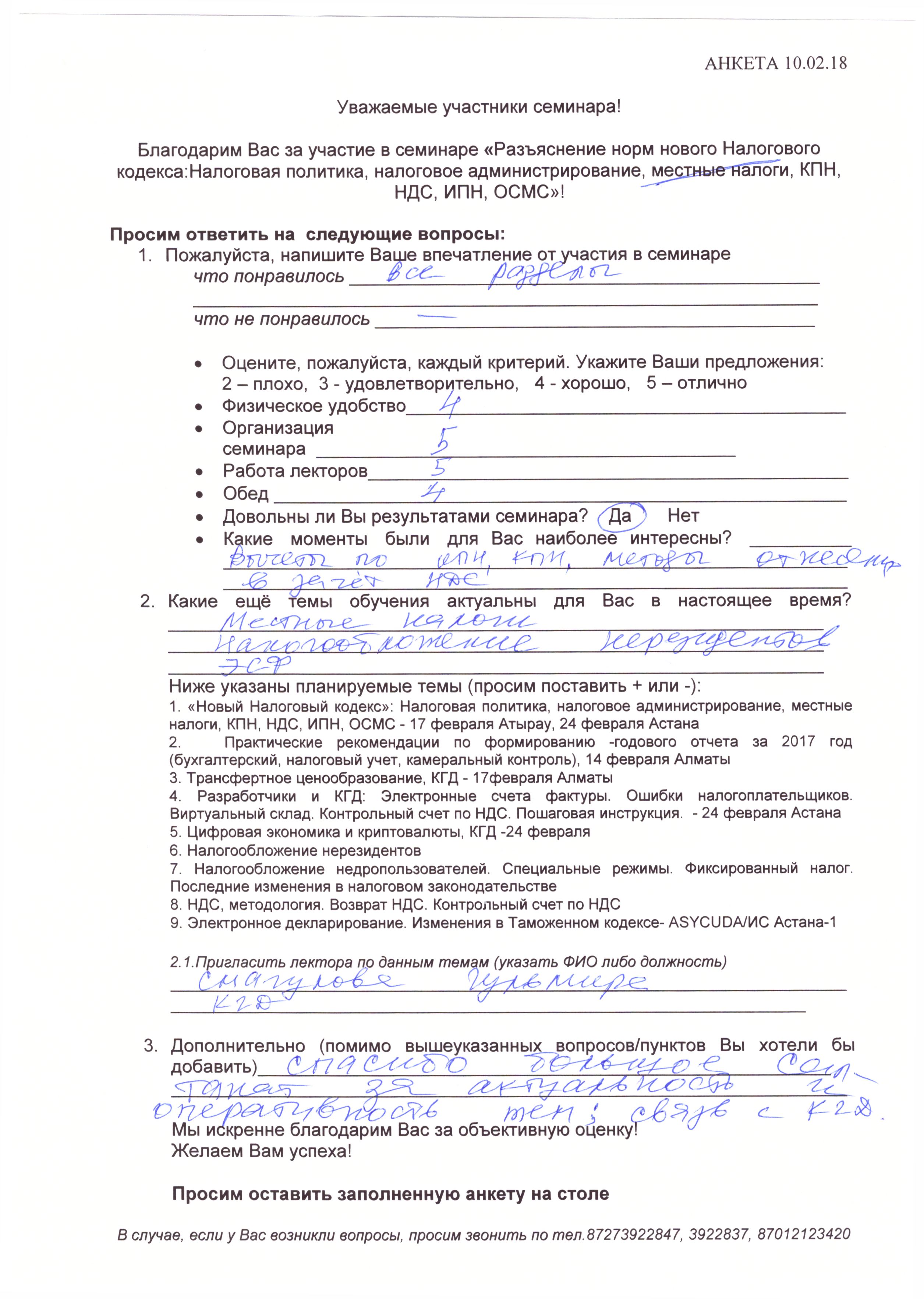 Отзывы по семинару с КГД «Новый Налоговый кодекс» 10 февраля