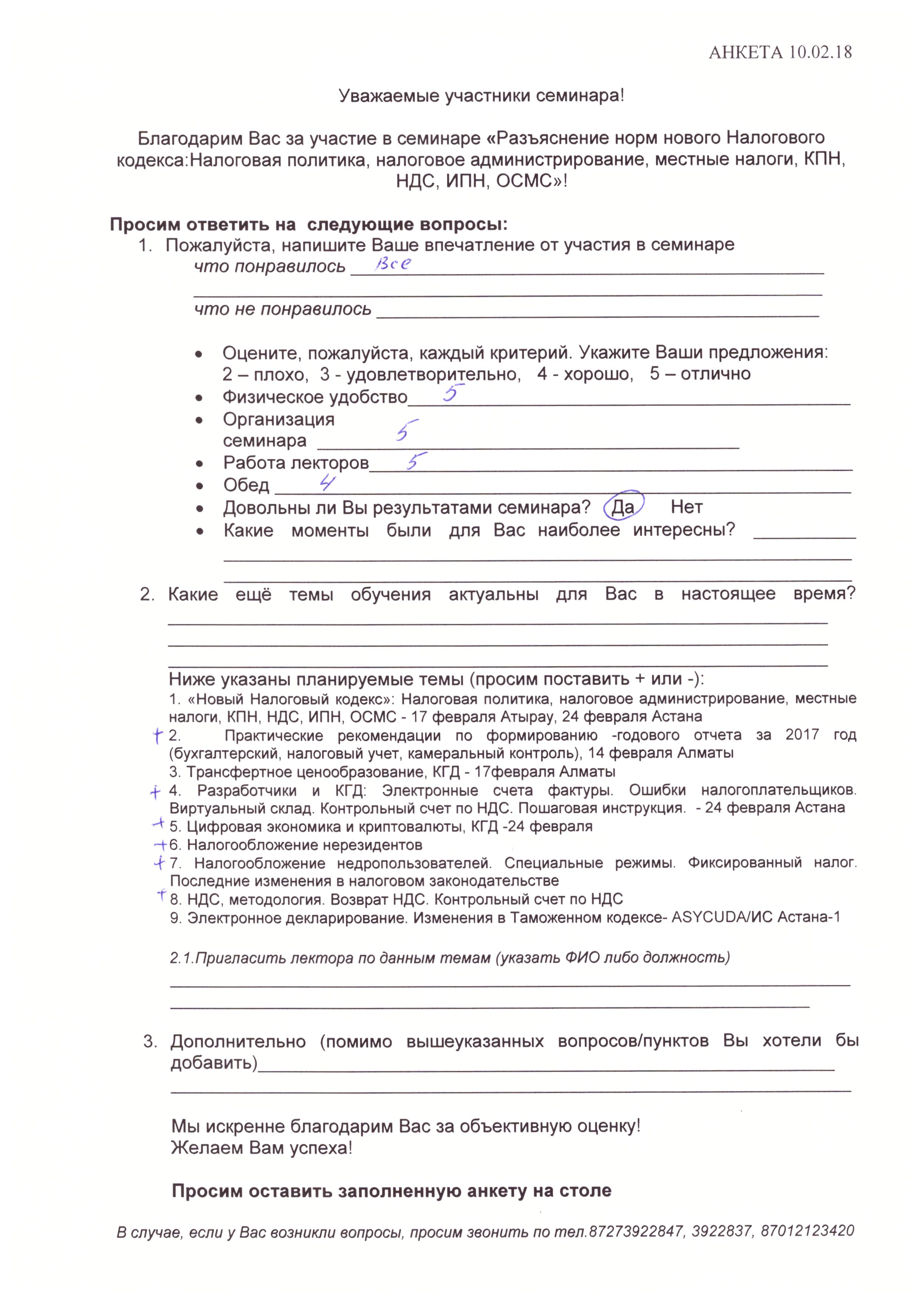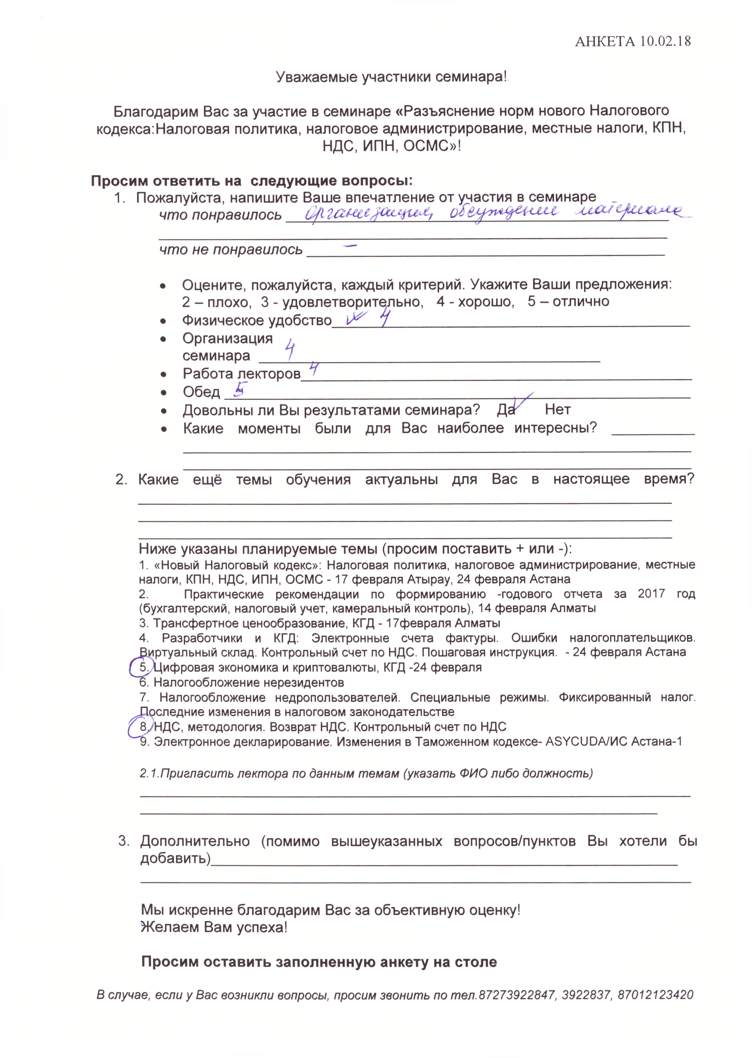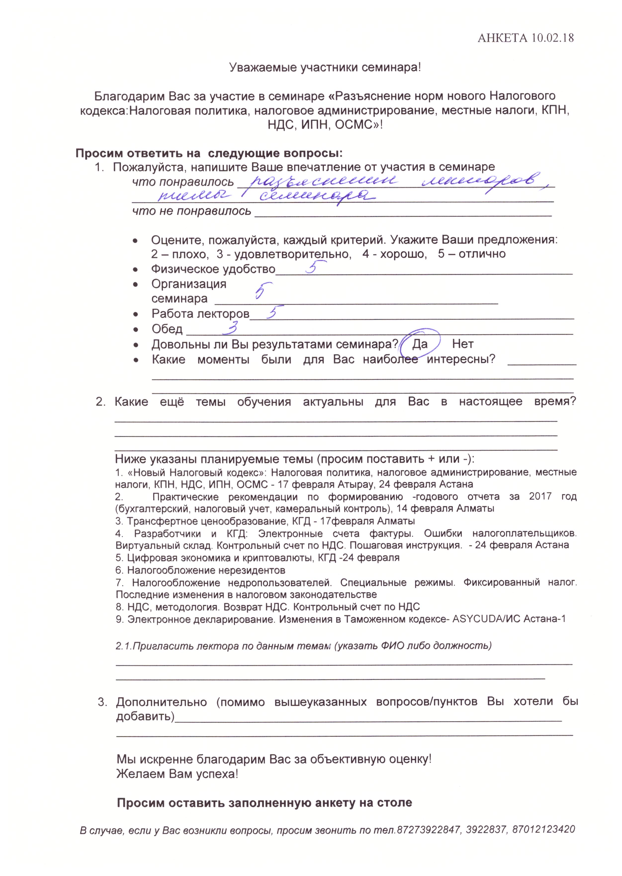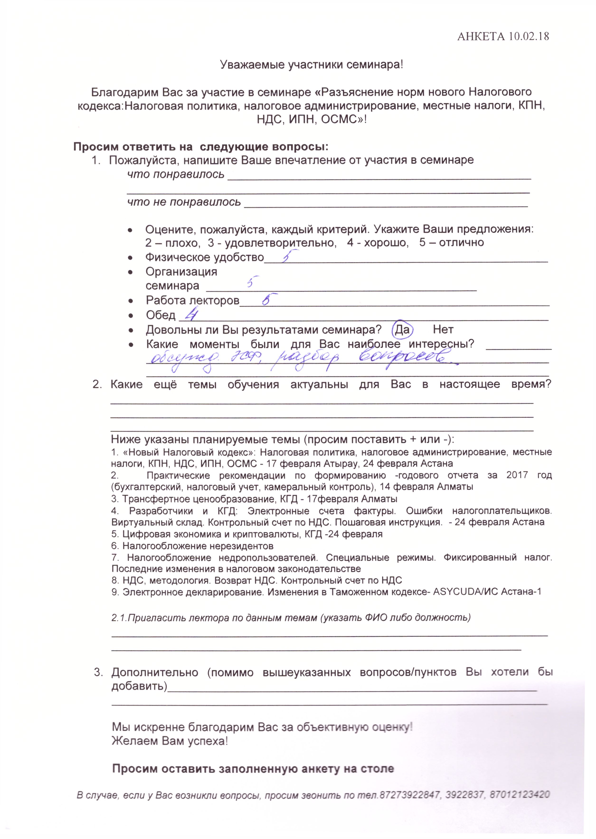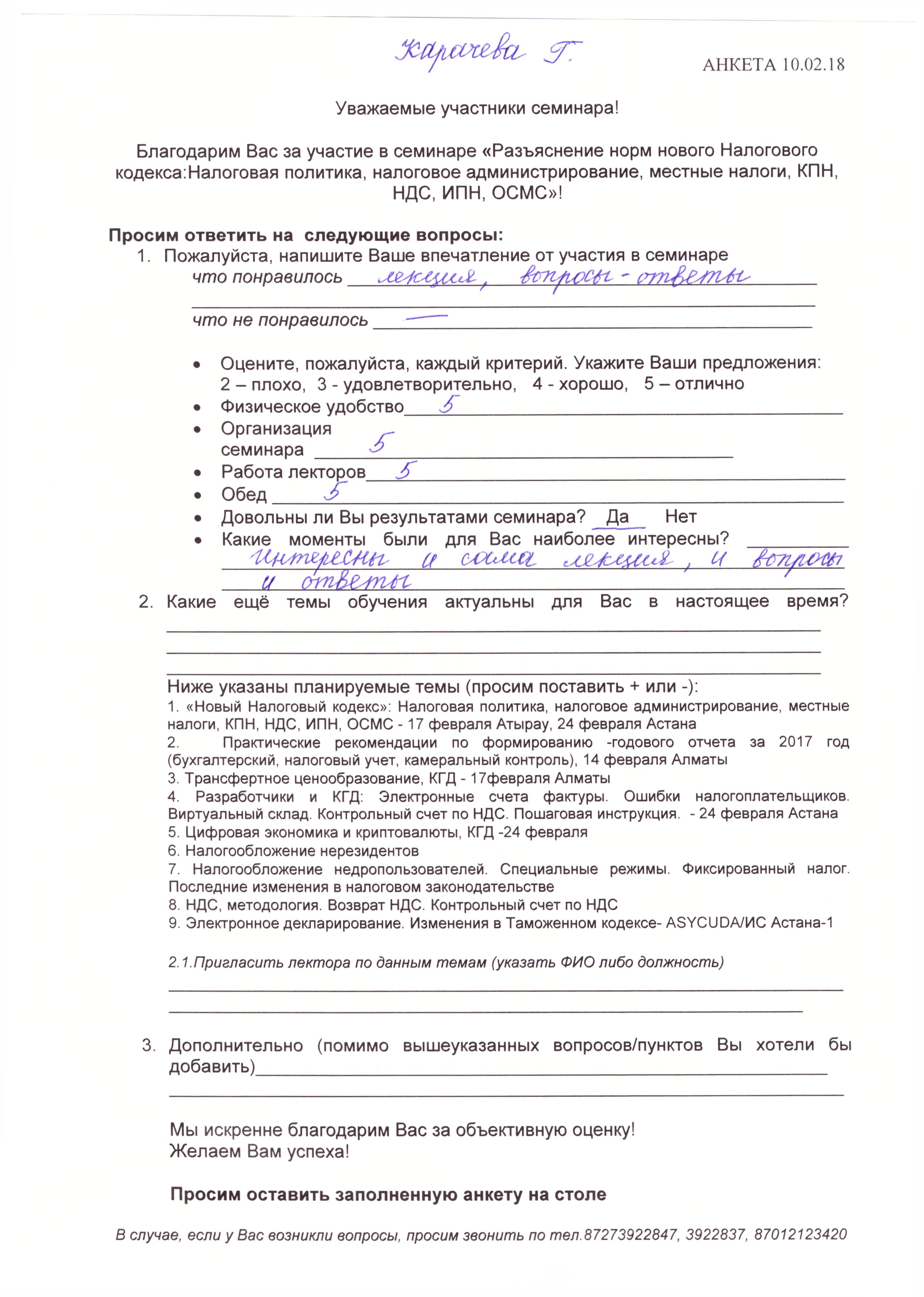 Отзывы по семинару с КГД «Новый Налоговый кодекс» 10 февраля