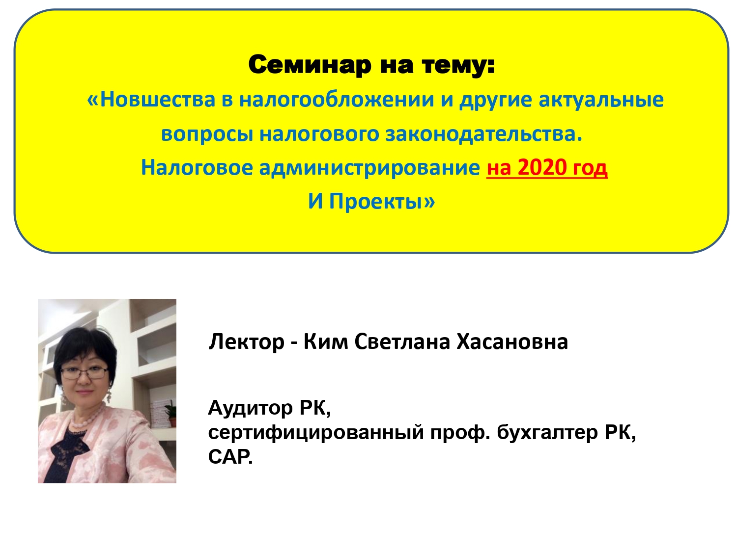 Презентация: Изменения в Налоговом Законодательстве на 2020 год (г. Астана, 10 февраля)